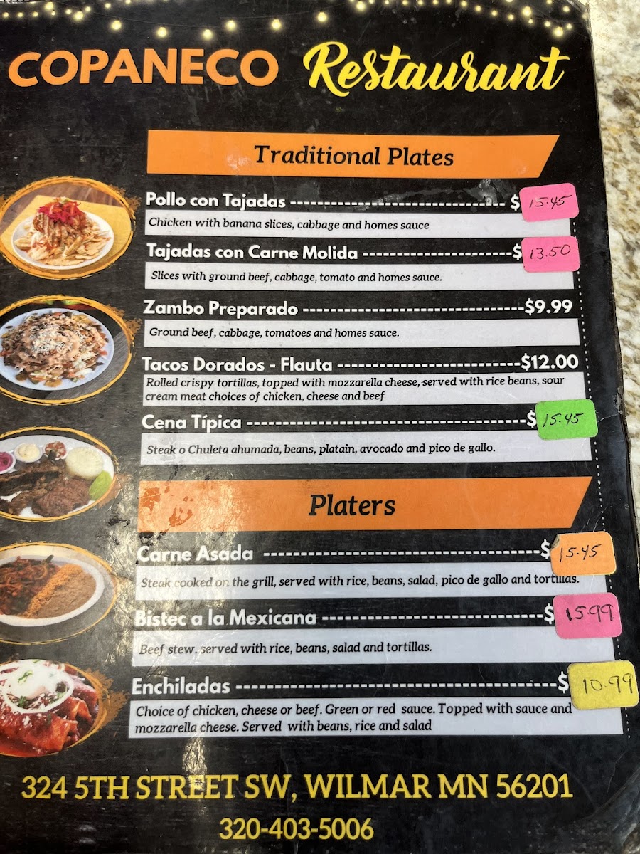Welcome to Copaneco Restaurant, a vibrant spot located in Willmar, MN, where the rich flavors of Honduran cuisine come alive. Nestled at 324 5th St SW, this eatery has quickly garnered rave reviews from satisfied diners eager to spread the word about their delightful menu.